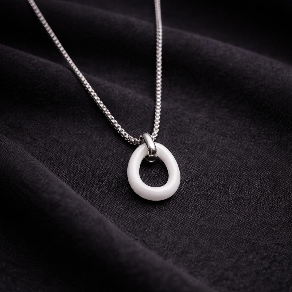 Elevate your everyday elegance with this refined white oval pendant chain. Crafted with precision, the smooth oval pendant catches light beautifully while the delicate chain ensures a graceful drape. Perfect for layering or wearing solo, this versatile piece transitions seamlessly from casual to formal occasions. The neutral white finish pairs effortlessly with any wardrobe, making it an essential addition to your jewelry collection.